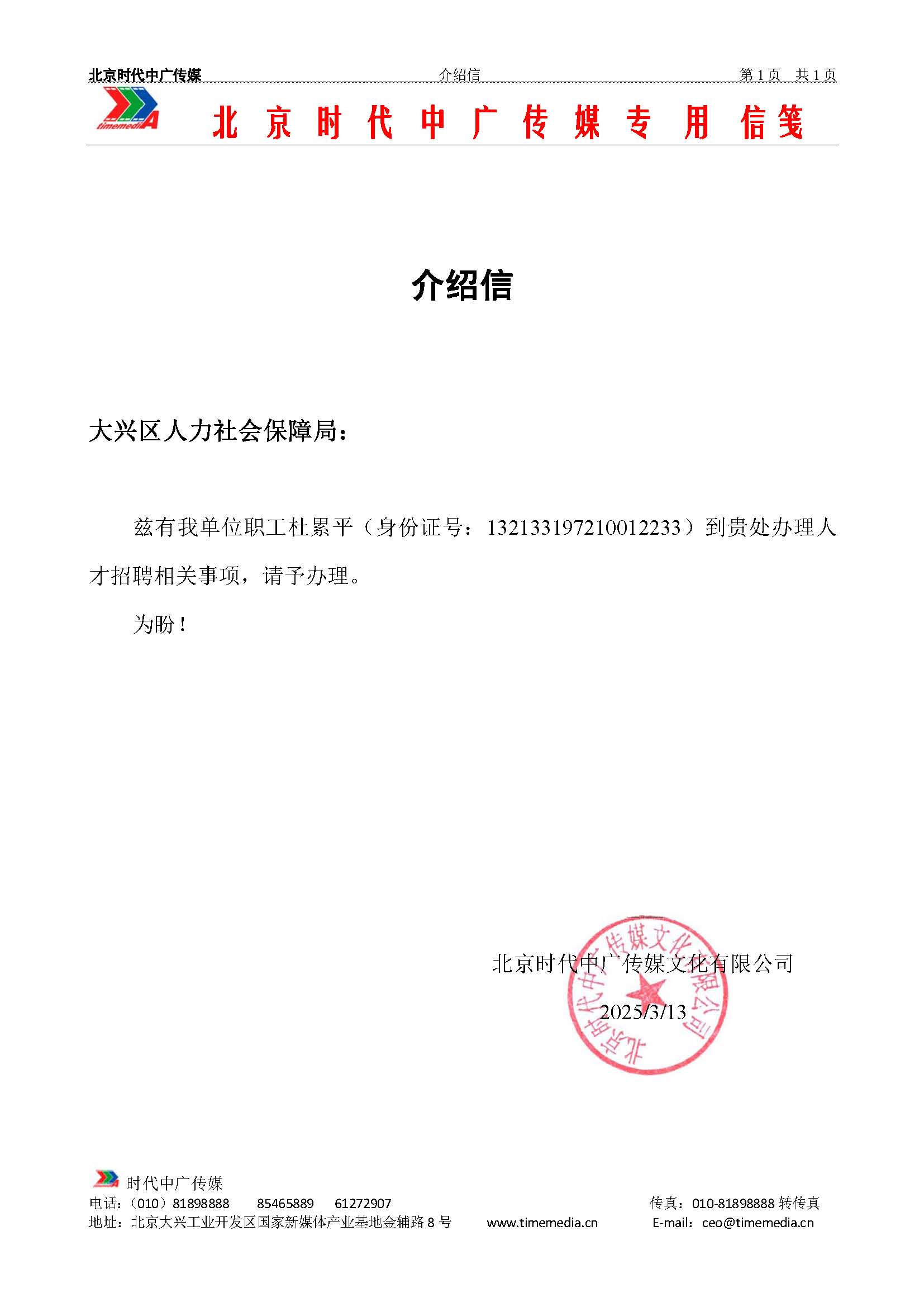 | 单位: | 北京时代中广传媒文化有限公司 | ||