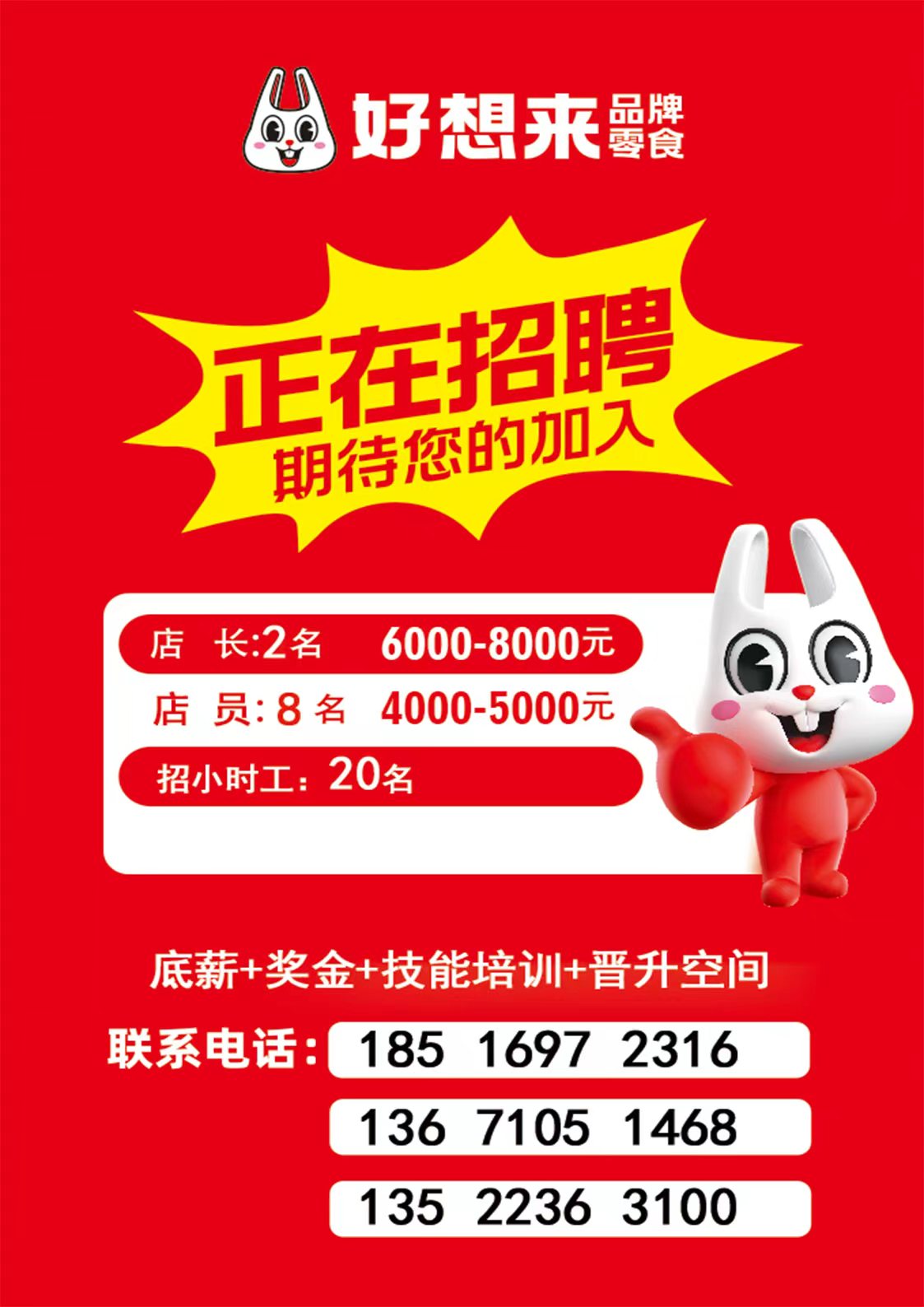 | 企业简介: | 北京艺品购商贸有限公司成立于2018年,致力于快消品批发零售行业,深耕多年,并于2024年加入好想来品牌零食店,目前已开三家店,这次在大兴旧宫镇新开一家,现招聘店长2名。电源8名。 |