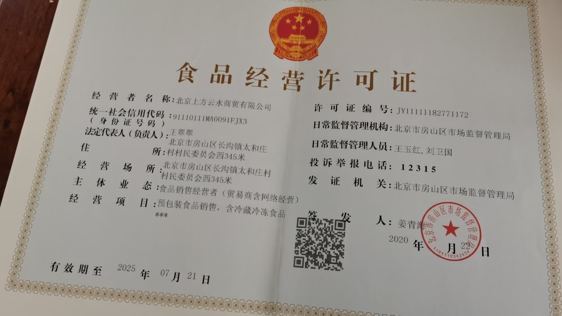 | 单位全称: | 北京上方云水商贸有限公司 | ||