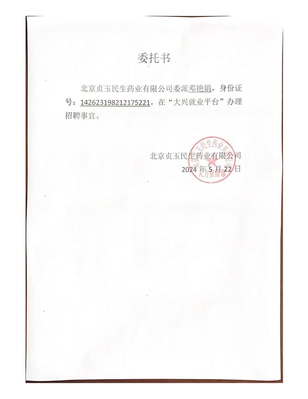| 单位全称: | 北京贞玉民生药业有限公司 | ||
